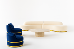 The Ambrose Lounge Set is a true statement of refined design — featuring a plush C-shaped sofa paired perfectly with two Virelle Swivel Velvet Chairs, all accented with golden acrylic details that radiate elegance. Completing the ensemble is the Magnolia Travertine Coffee Table, adding timeless texture and natural charm to the modern aesthetic. Designed for both comfort and allure, this collection transforms any living area into a luxurious retreat — blending sculptural silhouettes, soft velvet upholstery, and rich material contrasts for a truly elevated experience.