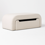 The Brunna Storage Ottoman combines style and function with its soft, rounded silhouette and versatile storage space. Perfect for bedrooms, living rooms, or play areas, it offers a chic solution for tucking away blankets, toys, or clutter. Upholstered in your choice of fabric, velvet, or boucle, it adds a cozy yet modern touch to any space.