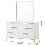 The Elanor Dresser Set brings a graceful and refined presence to any bedroom. Constructed from high-quality MDF, it features a six-drawer dresser that offers generous storage while maintaining a sleek, symmetrical look. The set includes a matching rectangular mirror framed in a minimalist border, enhancing the dresser’s timeless charm with clean, contemporary appeal. Ideal for those who appreciate classic style with modern convenience, Elanor delivers both beauty and practical organization in one cohesive piece.