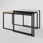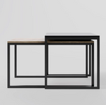 Thoughtfully designed to balance organic texture with clean structure, the Lounge Coffee Table Set features two elegantly proportioned tables with rich MDF wood tops and sleek steel legs. The warm finish of the tops contrasts beautifully with the cool, minimalist metal base offering a contemporary yet inviting aesthetic. With two different sizes, the set allows for versatile styling: nest them for a layered centerpiece or separate them for practical, flexible use around the room. Perfect for modern living spaces seeking both function and refined design.