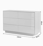 Sleek, smart, and effortlessly modern, the Lume 6 Drawer Dresser is designed for those who appreciate clean lines and uncluttered design. Featuring six spacious push-to-open, soft-close drawers, it offers generous storage without the need for visible hardware—creating a truly seamless look. The high-gloss finish enhances its crisp, minimalist frame, bringing a polished, contemporary feel to any bedroom. Perfect for organizing daily essentials while maintaining a calm and refined aesthetic.