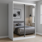 Bring luxury and functionality together with the Luxe Sliding Doors Wardrobe, a stunning storage solution designed to elevate your bedroom. Its fully mirrored sliding doors create a glamorous look while reflecting light to make your space feel larger and brighter. Inside, six cubby shelves offer organized storage for folded clothes and accessories, while a sturdy hanging rod provides ample room for garments. With its sleek sliding door mechanism, this wardrobe saves space and adds a modern, stylish touch to any interior.
