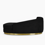 Upholstered in sumptuous velvet, the Vellora Chaise Lounge makes a striking statement in any room. Its gracefully curved back creates a sculptural silhouette, while the wooden base finished in radiant gold adds a touch of opulence and warmth. Perfect for living rooms, bedrooms, or luxe lounge spaces, this chaise embodies modern glamour with timeless elegance a piece designed to be both inviting and unforgettable.