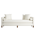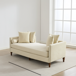 Elegant and versatile, the Veloura Chaise Lounge adds a touch of luxury to any bedroom or living space. With its generous width and length, it can easily double as a daybed or bench, offering both style and functionality. Upholstered in soft fabric and accented with several coordinating pillows, this chaise delivers comfort and sophistication in equal measure.