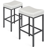 Introduce timeless style and everyday functionality with this set of 2 backless bar stools. Featuring a sturdy metal base and a saddle-style seat upholstered in premium PU leather, each stool is padded with high-density sponge for lasting comfort. Ideal for both residential and commercial spaces, these stools combine modern elegance with practical seating perfect for kitchen islands, bars, or counters.
