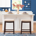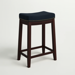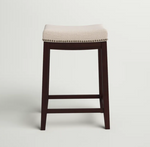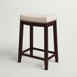 Bring timeless charm and comfort to your kitchen or home bar with this set of 2 Backless Bar Stools. Each features a contoured saddle seat upholstered in soft linen for a plush, supportive feel. Silver nailhead trim lends vintage elegance, while the solid wood frame provides lasting durability and rustic warmth. Perfect for farmhouse, transitional, or classic interiors, these stools offer a blend of style and everyday comfort.