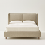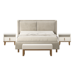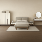 Bed Frame: Solid wood structure with linen-upholstered headboard