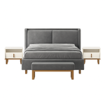 Functionality: Ample storage across dresser, nightstands, and wardrobe; upholstered elements for comfort