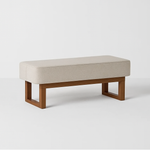 Upholstery: Soft linen fabric on bed, pouf, and bench