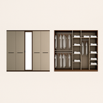 The Elmora 5-Piece Bedroom Set brings refined comfort and a streamlined look to your bedroom. The centerpiece is a linen-upholstered bed built on a solid wood frame for lasting durability. Coordinated MDF storage pieces complete the set, blending sleek modern style with practical organization. This collection includes two nightstands, a dresser, and a spacious 6-door wardrobe, offering ample storage while maintaining a cohesive design aesthetic.