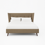 Bed Frame: Solid wood structure with linen-upholstered headboard