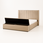 The Alcova Upholstered Storage Bed blends contemporary style with everyday functionality. Wrapped in soft, linen-look fabric and padded for comfort, it features a striking channel-tufted wingback headboard, adding depth and a touch of luxury to your bedroom. A discreet built-in storage box at the footboard keeps extra blankets, pillows, or essentials neatly organized and easily accessible—perfect for maximizing space without compromising on style. The bed’s solid wood frame ensures long-term durability and stable support, while the padded headboard provides extra comfort for lounging or late-night reading.