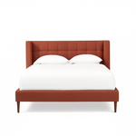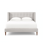The Aspen Upholstered Bed features a stitched tufted wingback headboard that adds refined, tailored texture, bringing elegance to any modern bedroom. Thickly padded and tightly upholstered on all sides in your choice of luxurious velvet or soft fabric, the Aspen perfectly balances comfort with contemporary design. A sturdy solid wood frame and wooden base ensure lasting durability and dependable support, while the fully upholstered sides create a cohesive, grounded silhouette.