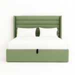 The Callisto Bed blends timeless charm with practical storage. Upholstered in soft linen fabric, it showcases a regal wingback headboard with horizontal channel detailing, adding depth and sophistication to any bedroom. Beneath the platform, a smooth hydraulic lift-up base reveals generous hidden storage, ideal for keeping bedding, pillows, and seasonal items neatly tucked away. Built on a robust solid wood frame and supported by a durable mechanism, Callisto delivers both style and dependable comfort.