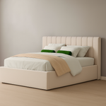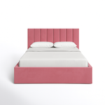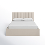 The Celestine Channel Bed blends soft, inviting comfort with a sleek, sculptural presence. Generously padded around the entire frame and headboard, it creates a warm, welcoming aesthetic perfect for relaxed yet refined interiors. The vertical channel tufting on the headboard adds a modern, mod-inspired detail, while your choice of soft fabric or luxurious velvet upholstery enhances its cozy, upscale appeal. Built on a sturdy solid wood frame with a durable wooden base, the Celestine is designed for both style and long-lasting support.