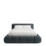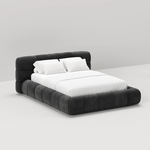 The Nimbus Cloud Bed blends sleek modern lines with plush comfort for a serene, elevated bedroom experience. Its low-profile headboard offers a minimalist aesthetic while providing a comfortably padded backrest—ideal for relaxed lounging or late-night reading. Wrapped in high-quality velvet and finished with a subtle ripple pattern, Nimbus adds soft texture and quiet sophistication to any space. Crafted with a solid wood frame and durable wooden base, this bed offers lasting support and understated luxury.