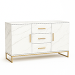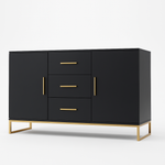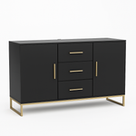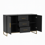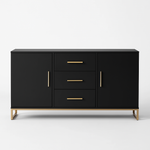 Storage Configuration: Two side cabinets and three central drawers for versatile storage