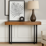 Streamlined Style with Smart Storage The Modrix Console combines clean lines and modern materials to create a sleek, functional accent for your entryway or living room. Crafted with an MDF wood top and supported by a sturdy steel base, it features two drawers that offer practical storage while maintaining a minimalist aesthetic. Perfect for displaying decor or keeping essentials organized, the Modrix adds both style and substance to any space.