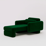 Silhouette: Chaise-style with asymmetrical armrests at varying heights