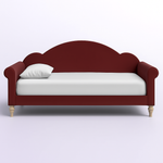 The Cumulus Daybed blends classic elegance with cozy comfort, offering a refined place to lounge, nap, or host overnight guests. Upholstered in soft fabric, its graceful arching headboard and gently curled arms create a timeless chaise-inspired silhouette. Turned wooden legs add a touch of traditional charm, enhancing its sophistication. Complete with a medium-firm foam mattress and matching fabric cover, this daybed is a stylish and practical addition to any bedroom or guest space.
