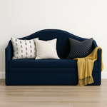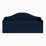 The Mirelle Trundle Daybed is the perfect combination of classic charm and everyday practicality, ideal for adding extra sleeping space without sacrificing style. Upholstered in soft fabric with medium-firm foam padding, it features elegant nailhead trim along the top and side edges for a refined decorative touch. This versatile piece includes two foam mattresses—one for the main bed and one for the pull-out trundle—both with matching fabric covers to create a seamless look. Whether used in a living room, guest room, or den, the Mirelle offers a comfortable and stylish solution for lounging or sleepovers.
