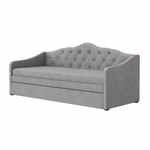 The Nuvio Trundle Daybed is the ultimate space-saving solution, designed to function as both a stylish sofa and a cozy bed. Ideal for small spaces, this versatile piece features a hidden trundle for extra sleeping space when needed. Upholstered in soft-touch velvet fabric, the daybed is adorned with elegant crystal diamond button tufting along the backrest, adding a timeless touch of sophistication to any room. It includes two foam mattresses—one for the main bed and one for the trundle—both with matching fabric covers for a seamless look. Whether for everyday lounging or accommodating guests, the Nuvio Daybed offers both comfort and style.