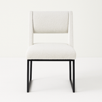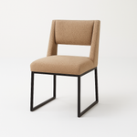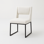 Textured comfort with a modern edge. The Ash Dining Chair blends soft, tactile bouclé fabric with a sleek metal base, creating the perfect balance of cozy comfort and contemporary design. Its gently curved form offers supportive seating, while the minimalist frame adds visual lightness and durability. Ideal for modern dining spaces that value both texture and function.