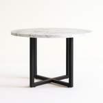 The Belmont Round Table combines contemporary style with a warm, residential feel, making it a perfect fit for modern dining spaces. Featuring a round MDF wood top and sturdy black metal legs, this table offers a sleek yet inviting look that suits both everyday meals and casual gatherings. Its compact size comfortably seats 4, making it ideal for kitchens, dining nooks, or open-plan spaces.