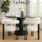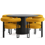 Modern charm meets everyday comfort. Designed for intimate meals and relaxed gatherings, the Hue Dining Set combines clean lines with soft, padded comfort. The round MDF table offers a space saving footprint with a minimalist aesthetic, while four cushioned chairs with sturdy metal frames provide cozy seating for long conversations. Whether you’re furnishing a breakfast nook or a modern dining area, Hue adds warmth and function in equal measure.