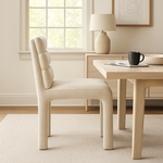 Sculpted comfort with a touch of luxury. The Loop Dining Chair is fully upholstered in smooth velvet, offering a sleek and inviting look that elevates any dining space. Its plush, curved contours and distinctive channel tufting create a refined silhouette that feels as good as it looks. Whether around the table or as an accent piece, Loop adds a statement of comfort and modern style.