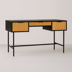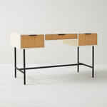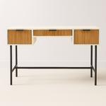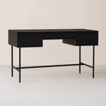 Elevate your workspace with the Aveline Luxury Computer Desk, a perfect balance of functionality and refined style. Three fluted drawers provide organized storage for notebooks, pens, and office essentials, while the textured drawer fronts add depth and sophistication. Sleek metal legs support the design, creating a graceful modern silhouette that enhances both home and professional office settings.