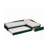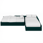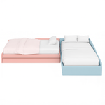 The L-Shape Bed with Storage is a practical and stylish solution, featuring two beds with built-in drawers for convenient storage. Upholstered in soft fabric and supported by a sturdy frame, this bed combines comfort, durability, and space-saving functionality for any room.