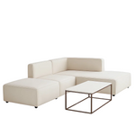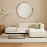 The Luna Boho Living Set brings together contemporary elegance and laid back bohemian style. The medium firm L-shaped sofa, crafted with a sturdy solid wood frame, offers lasting comfort and a relaxed seating experience. Paired with a sleek white coffee table featuring a durable MDF top and steel legs, this two-piece set combines functionality with character, making it an inviting centerpiece for any living space. Perfect for homes that value both style and everyday comfort.