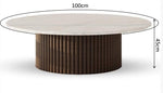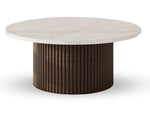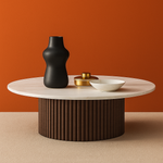 Defined by clean lines and soft curves, the Aureva Center Table is a striking yet understated focal point for modern living spaces. Featuring a round MDF top with a luxurious marble-look finish and a sculptural fluted cylindrical base, this piece blends contemporary minimalism with rich textural detail. Designed to anchor any seating area with grace, the Aureva offers a perfect balance of visual impact and everyday functionality making it an ideal centerpiece for sophisticated interiors.