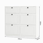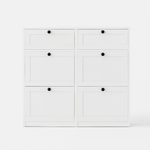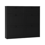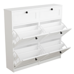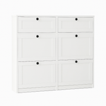 Space Saving Elegance with Hidden Storage Tidy up your footwear collection with the Brikka Shoe Cabinet, designed to hold up to 24 pairs while keeping your space sleek and clutter free. Built from durable MDF wood, this cabinet features two flip out drawers that reveal deep, angled compartments ideal for compact and efficient shoe storage. Two upper drawers provide additional space for accessories or daily essentials. With its slim profile and modern design, Brikka is perfect for hallways, bedrooms, or entryways.