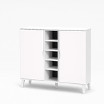 Functionality: Combines concealed and open storage to organize footwear efficiently
