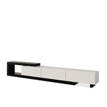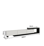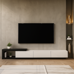 Adaptive design with sculptural simplicity. The Klyne TV Unit is all about modern versatility. Its extendable frame glides smoothly from 180 cm to 265 cm, making it ideal for compact spaces or larger layouts. The bold black-and-white lacquered finish adds architectural contrast, while the minimalist profile keeps your setup feeling light and refined. Built from MDF wood for durability, Klyne brings form, function, and flexibility together in one streamlined piece.
