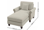 The Maison Upholstered Chaise offers a timeless seating solution with a blend of comfort, durability, and classic design. Featuring soft fabric upholstery, elegant nailhead trim on the arms, and a sturdy frame, it brings sophistication to any living room. The included matching pillow enhances both comfort and visual harmony, making it a practical yet stylish choice for relaxed lounging.