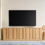 Modern form. Subtle depth. The Solna TV Stand combines clean lines with striking texture, thanks to its recessed carved paneling that adds depth without distraction. Crafted from MDF wood, its streamlined silhouette anchors your space with quiet confidence. Behind its sculpted facade, generous storage compartments keep clutter out of sight—perfect for tech, decor, or everyday essentials. Whether styled in a minimalist lounge or a curated media room, Solna brings architecture-inspired elegance to your setup.