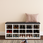 Smart Seating with Hidden Storage The Tavrin Shoe Bench is a practical and stylish addition to any entryway or hallway. Designed to hold up to 15 pairs of shoes, this compact bench offers open cubbies for easy access and neat organization. Its sturdy top doubles as a comfortable seat, making it easy to slip your shoes on or off while keeping clutter out of sight. With its clean lines and minimalist form, Tavrin brings functional elegance to your daily routine.