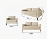 The Versailles Sofa Set blends modern refinement with timeless comfort, making it an elegant centerpiece for any living space. This 3-piece collection includes a sofa, loveseat, and armchair each designed with high density foam cushions for superior comfort and support. Upholstered in soft, premium fabric with classic button tufting, the set exudes understated sophistication. Built on a sturdy frame with solid wood legs, the Versailles is crafted for durability and everyday use. Its minimalist, contemporary profile allows it to blend effortlessly into a variety of interior styles, from modern to transitional.