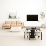 The Maven 1BHK Furniture Package offers the perfect blend of style, comfort, and functionality, thoughtfully designed to furnish your home with a coordinated, modern aesthetic. Ideal for one-bedroom apartments, this complete set ensures every space is both elegant and practical. The package includes a bed with a Bonnel spring mattress for optimal comfort, paired with two 2-drawer nightstands and a matching 3-drawer dresser for organized storage. The L-shaped upholstered sofa creates a cozy and inviting seating area, complemented by a matching coffee table and an MDF TV stand that anchors your living room with sleek simplicity. Completing the setup, the 4-seater dining set features a wooden dining table and upholstered chairs, combining modern design with everyday functionality. Crafted from durable MDF for wooden components and solid wood for the bed and sofa frames, each piece is finished with premium fabric or velvet upholstery, offering both durability and refined comfort.