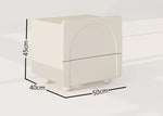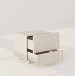 The Nira Nightstand brings modern charm to your bedroom with its sleek silhouette, asymmetric surface, and distinctive spherical legs. Designed with two drawers of varying height, it offers functional versatility while adding visual interest and personality to your space. Crafted from durable MDF, Nira balances clean lines with unique details—making it an ideal accent for contemporary or curated interiors seeking both style and storage.