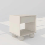 Structure: One drawer design with sculptural spherical legs