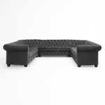 Bring timeless elegance and spacious comfort to your living room with the Garric 11-Seat U-Shaped Chesterfield Sofa. Featuring classic button tufting, rolled arms, and a stately silhouette, this sectional captures the charm of vintage design while offering generous seating for gatherings, lounging, or movie nights. Upholstered in soft fabric and supported by a sturdy frame, the Garric blends traditional style with everyday durability.