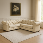 A statement in classic elegance, the Garric Corner Sofa showcases signature Chesterfield detailing—rolled arms, deep button tufting, and a vintage-inspired silhouette. Upholstered in soft fabric and built on a sturdy frame, it offers a timeless blend of heritage style and modern comfort. Perfect for adding character and sophistication to refined interiors.