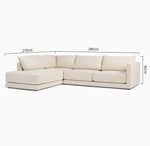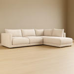 Clean lines and a low silhouette define the Huxley 2-Piece L-Shape Sofa a minimalist piece with industrial undertones. Upholstered in soft fabric with medium-firm cushioning, it features a low-profile, slim base that subtly frames the thick seat and back cushions. Wooden legs add warmth while keeping the look grounded and contemporary. Perfect for modern lofts or understated interiors that value both comfort and design clarity.