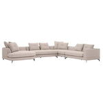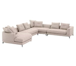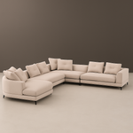 This large L-Shape Sofa blends contemporary sensibilities with a sleek silhouette, making it the perfect centerpiece for any modern space. Featuring a curved chaise, soft fabric upholstery, and a sturdy frame, it offers exceptional comfort and style. Its black feet add a bold, characteristic touch, enhancing the modern chic aesthetic. Complete with nine cushions to complement its style, the Ravo is designed to elevate your living room with a clean, sophisticated look. Ideal for larger spaces, this timeless addition will transform your home.