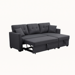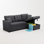 The FormaFlex L Shape Sofa Bed blends modern design with multifunctional convenience. Featuring a pull out bed and built in storage chaise, it’s perfect for small apartments or multi use spaces. Upholstered in soft fabric, this sectional offers everyday comfort for lounging while easily transforming into a bed for overnight guests. With its clean lines and contemporary silhouette, FormaFlex delivers smart, space saving living without compromising on style.