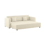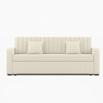 The Resty Sofa Bed combines sleek design with everyday versatility. Featuring a channel tufted backrest and soft touch fabric upholstery, it delivers a refined aesthetic and comfortable seating for three. By night, it quickly transforms into a cozy bed perfect for apartments, guest rooms, or multi purpose living areas.
